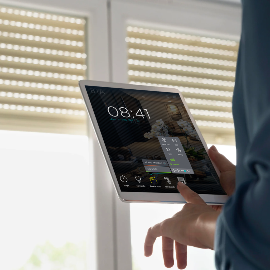 Com a Casa Digital, sua empresa pode ter um sistema de áudio e vídeo integrado. Transmita seus vídeos corporativos e apresentações em uma tela grande e ouça música em todos os ambientes, com som de alta qualidade. Além disso, você pode controlar tudo com o seu smartphone ou tablet, tornando a experiência ainda mais prática e profissional.